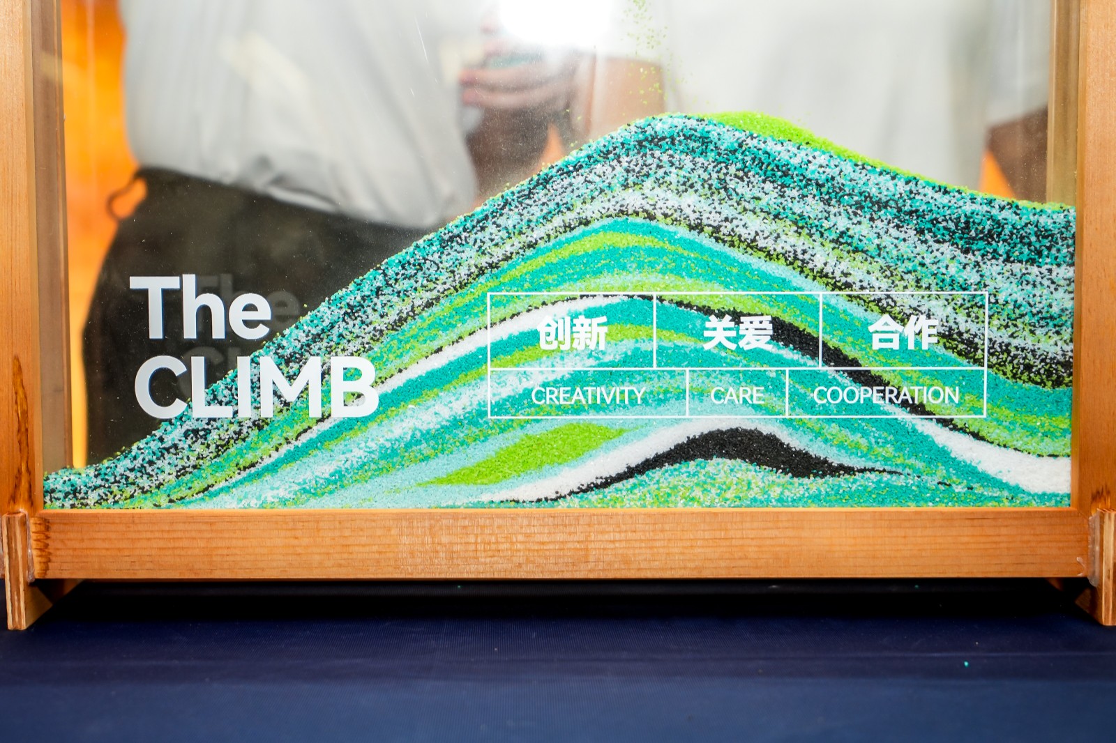 隨著不同顏色的彩沙緩緩倒入,層層疊疊的“山”逐漸被描繪出了明晰的形狀——邁普人的“攀登者精神”也在此刻有了更加生動(dòng)的詮釋。